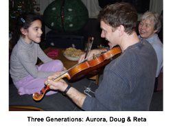 The musical genes now have been passed on to the granddaughters, Aurora and Lyla, both of whom play the piano and are taking ballet, and one – Lyla, Chris’ daughter, currently aged 13 – who also plays the ‘cello, and who is a member with three friends of the Borealis Quartet (a name she chose).